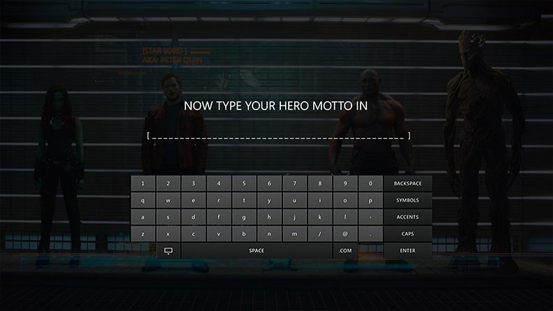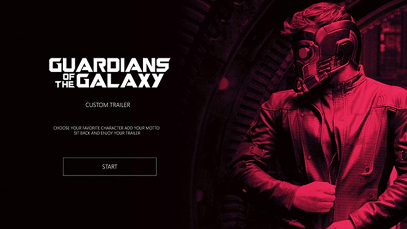 Comics and Games are a match made in heaven so the chance to bring that excitement and geeky joy to Dash was a big draw. The EMEA team helped bring Iron Man 3, Daredevil, Avengers: Assemble and sequel Age of Ultron to Xbox Dash. Some had quizzes little easter eggs or info on the film within the experiences. One fully-functional proposal was a custom name trailer template that we first pitched for Guardians of the Galaxy. The team created a 3D rendered tape deck intro which played the movie music once A was pressed then a choice of the 5 main characters awas presented to the user after that you could then input your motto. The movie trailer would then play and call out your Gamertag and motto beside your chosen character seamlessly in place of the actors name and final film tag line.